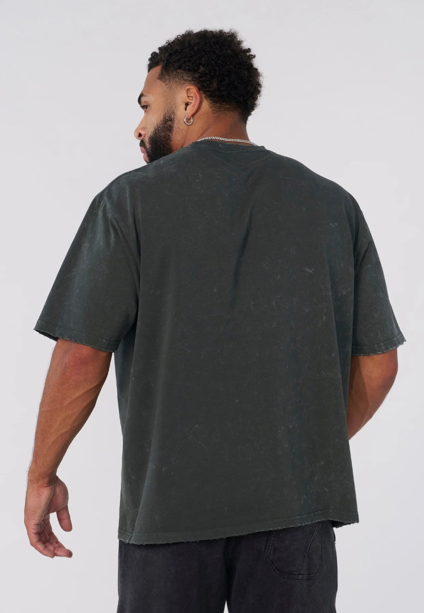DISEÑO: YOUNGLA Presenta las camisetas de venganza, con un logotipo audaz y gruñoso con un toque moderno. Encarnando la esencia de una nueva era, estas camisas cuentan con un efecto de angustia distintivo, añadiendo un toque vanguardista a tu estilo. Con su ajuste relajado y su llamativo diseño, son más que ropa, son una declaración.